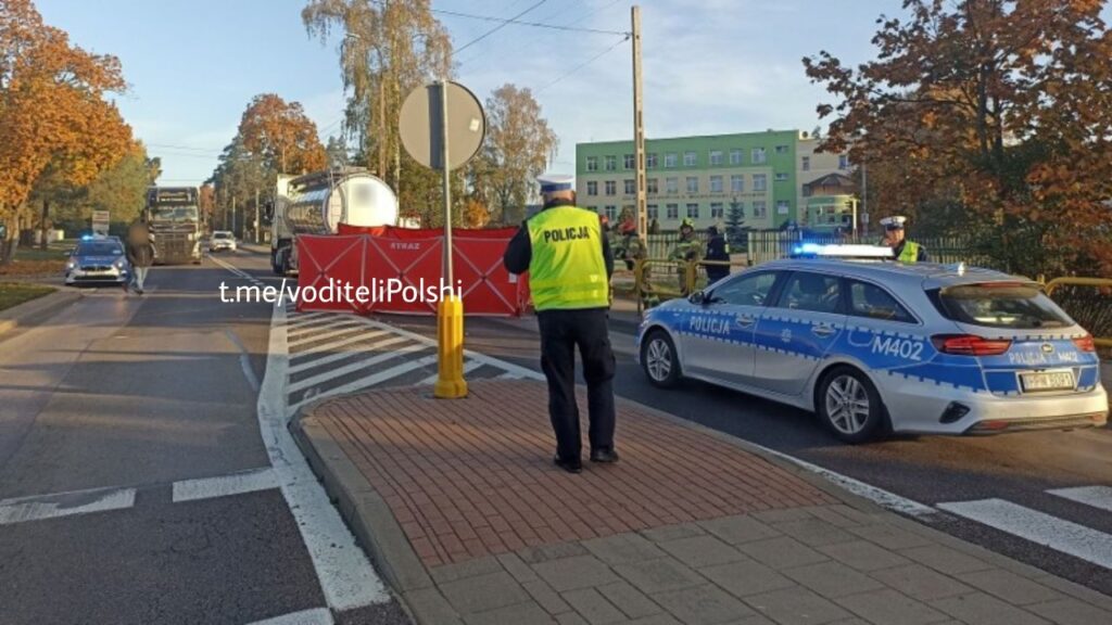 Водитель белорусской фуры около г. Августов сбил 15-летнего ребенка. Девочка переходила дорогу по регулируемому пешеходному переходу недалеко от школы.